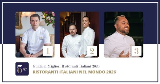 Lo Chef dell’Anno 2026 – Ferrarelle Award è Nello Cassese del Ristorante Hotel Cipriani, a Rio de Janeiro; il Maître dell’Anno 2026 – Maistà Award è Massimo Raugi di Villa Crespi a Orta San Giulio; il Manager dell’Anno 2026 – Il Fritturista – Oleificio Zucchi Award è Gianni Caprioli di Giando, a Hong Kong; il premio Novità dell’Anno 2026 – Solania Award va a ORSINI, a Zurigo; il premio Sommelier dell’Anno 2026 Award va ad Emanuele Izzo di Piazzetta Milù, a Castellammare di Stabia.