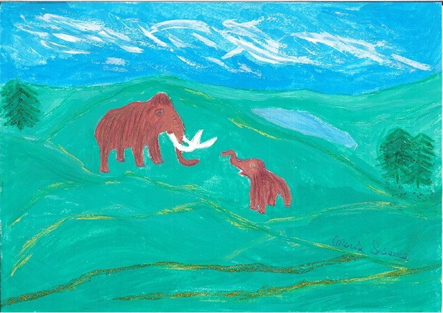 Immaginare ampie distese di prati, alture in una luce di un mondo molto diverso dove animali singolari vivevano in un tempo chiamato Pliocene circa 3500-4000 anni fa, tra questi animali il Mammut, un elefante con lunghe zanne ricurve con il corpo ricoperto di un lungo vello, pelliccia. Il mammuth era protetto dal freddo, dalla neve e venti gelidi dalla sua pelliccia lunga e folta e da uno spesso strato di grasso sotto la pelle.