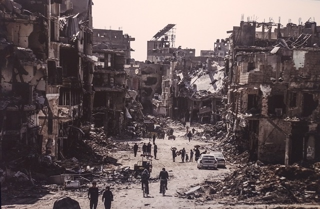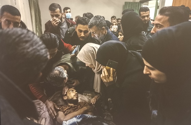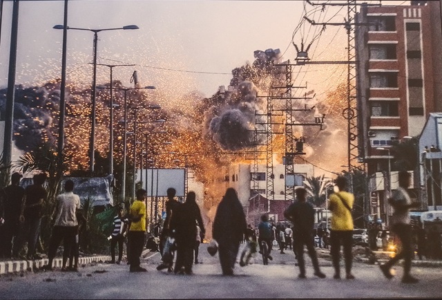 “Gaza sotto attacco israeliano” di Ali Jadallah (Palestina, Anadolu Agency) documenta il genocidio a Gaza. Secondo l’Onu, oltre il 60% delle case è stato abbattuto e il 95% degli ospedali è fuori servizio, oltre 2 milioni di persone sono state sfollate, a causa della carenza di cibo, acqua potabile e pulita, di medicinali, causate dalle restrizioni imposte da Israele. I giornalisti internazionali sono stati banditi da Gaza, i fotografi del posto hanno rischiato la vita per volere mostrare quanto accadeva realmente, Jadallah ha perso diversi familiari e in riferimento ai lutti e alle distruzioni ha confidato: “Ogni volta che fotografo una casa distrutta, ricordo la mia. Ogni volta che i feriti e i martoriati vengono estratti dalle macerie, ricordo mio padre e i miei fratelli”.