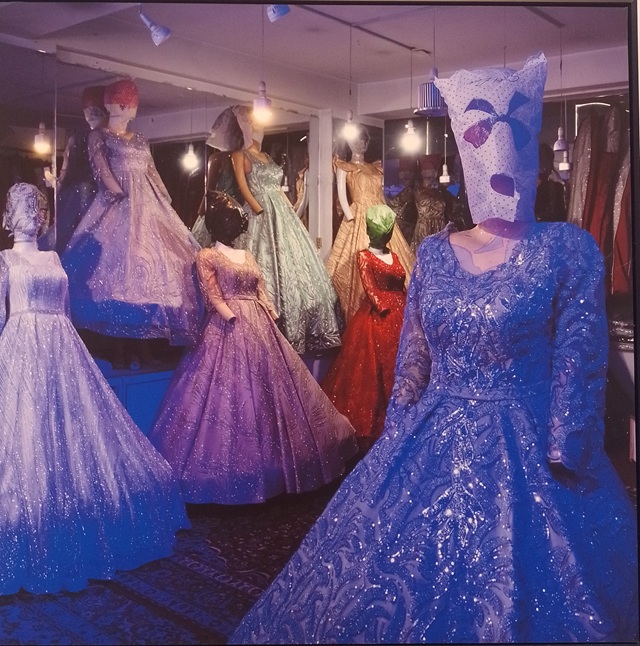 Dal reportage “Non è un paese per donne” di Kiana Hyeri (Iran/Canada, Fondation Carmignac) si evince quanto sia critica e dolorosa la condizione delle donne in Afghanistan, il governo nega loro l’accesso all’istruzione oltre la scuola elementare, le esclude dai mestieri fuori casa, relegandole al ruolo di casalinghe non per scelta e, spesso, di schiave recluse. In alcune regioni sono vietate alle donne le uscite senza la presenza di un uomo, o a viso scoperto. Sono vietati i luoghi e gli spazi dove un tempo ci si poteva incontrare e riunire liberamente, come scuole, parchi, palestre, uffici, parrucchieri, saloni di bellezza. Non è più permessa la formazione professionale in ostetricia con ripercussioni devastanti sull’assistenza sanitaria femminile. I talebani hanno proibito divertimenti, musica e balli. Sacchetti di plastica ricoprono le teste di manichini che indossano abiti da sposa e da cerimonia. Perfino i visi delle donne su pubblicità, poster, manifesti vengono cancellati oppure coperti in risposta a restrizioni e divieti imposti dai talebani. La giusta ribellione delle donne afgane si manifesta con intelligenza ed escamotage e avviene silenziosamente, a porte chiuse, nelle case e, soprattutto, in aule segrete, durante celebrazioni e ricorrenze, balli e festeggiamenti privati.