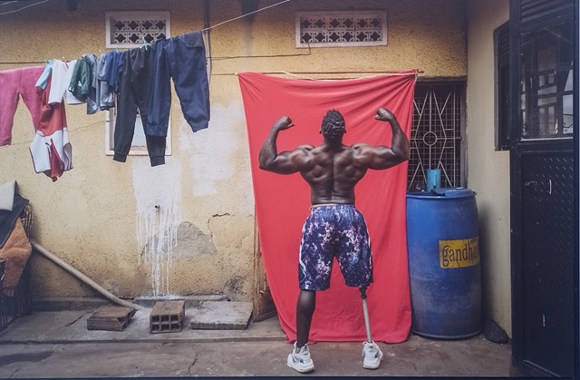 e la reporter freelance Marijn Fiddler, che ha ritratto il culturista Tamale Safalu nel corso di una sessione di allenamento nella sua casa, a Kampala, in Uganda. Dopo aver perso una gamba in un incidente in moto nel 2020, Tamale Safalu è diventato il primo atleta disabile ugandese a gareggiare con i normodotati. Tamale ha continuato ad allenarsi nel bodybuilding competitivo. La sua forza e determinazione, la sua vittoria sulle avversità, sfidano gli stereotipi e sono straordinarie fonti d’ispirazione e sprone per persone di ogni estrazione sociale.