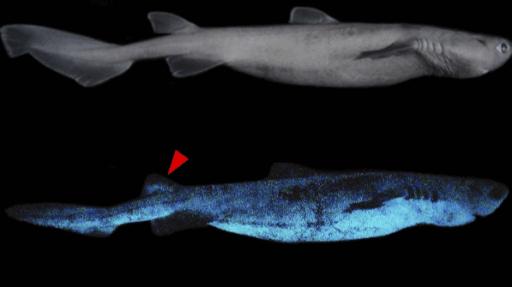 Recenti scoperte scientifiche hanno rivelato che molte specie di squali e razze possiedono proprietà biofluorescenti. Nel 2014 è stato scoperto che la pelle di due specie di squali di colore marrone opaco sotto la normale illuminazione è fluorescente e assume una debole luminosità verde quando gli individui nuotano in acque profonde dove, tuttavia, arrivano ancora gli ultimi raggi di luce blu. Si tratta di Cephaloscyllium ventriosum Garman, 1880, uno squalo del pacifico orientale che raggiunge la lunghezza di circa un metro e può ingrandire il suo corpo gonfiandosi di aria o di acqua per ingannare i predatori (pertanto, detto in inglese “swell shark”, cioè squalo gonfiabile) e di Scyliorhinus retifer, in inglese “chain catshark”, in italiano “gattuccio” dell’Atlantico occidentale.